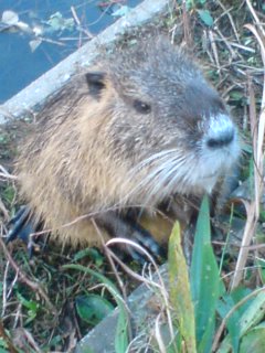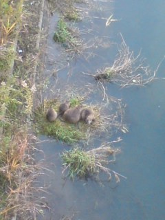 この川にヌートリアご一行様が時々いらっしゃることは噂には聞いていてよく橋からのぞいていたのですが、今日初めて出逢えました。ダッシュで川に降りていきました。